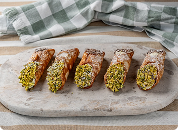 Filled with sweet fresh ricotta, pistachio & chocolate